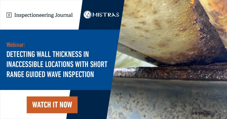 MISTRAS presented a webinar hosted by Inspectioneering Journal that dives into detecting wall thickness across inaccessible locations using Short Range Guided Wave inspection services.